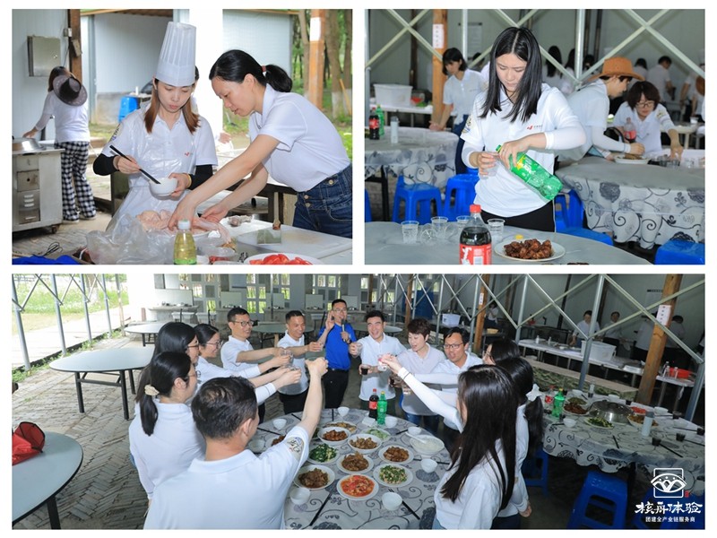 中午的土灶,小伙伴們自己自足,準備了一桌桌豐盛的午餐,為了自己的勞動成果,干杯??!