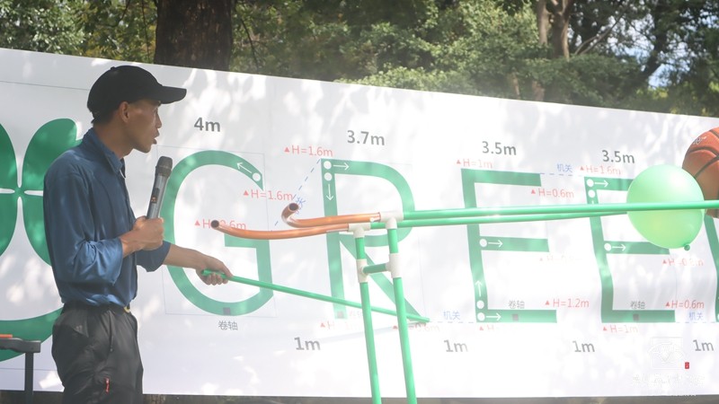 過山車落地并不代表項目已經結束,要通過籃球來驗證過山車是不是足夠牢固、可靠。小心翼翼地將籃球放在過山車的最高處,由于重力籃球向下沖去,在拐彎處我們都提著一口氣,生怕籃球“脫軌”。幸好一路上有驚無險,籃球安全到達終點。