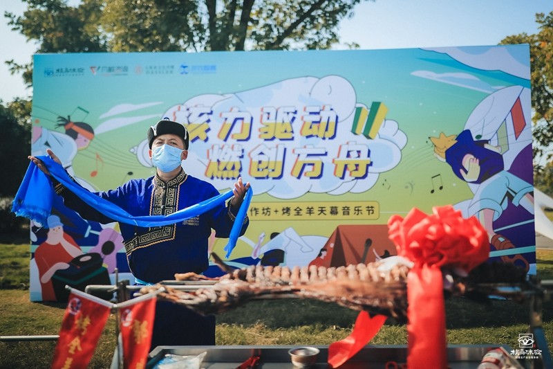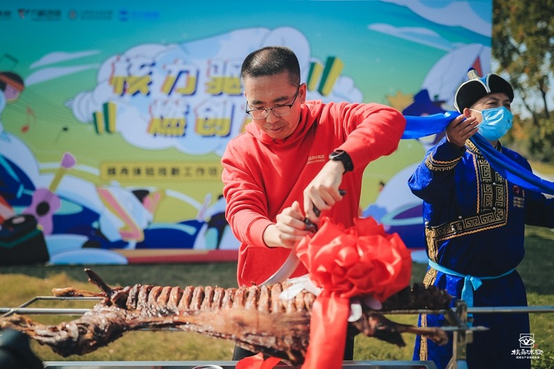 烤全羊是啟位大菜,位尊者要先唱歌, 獻哈達,敬酒,