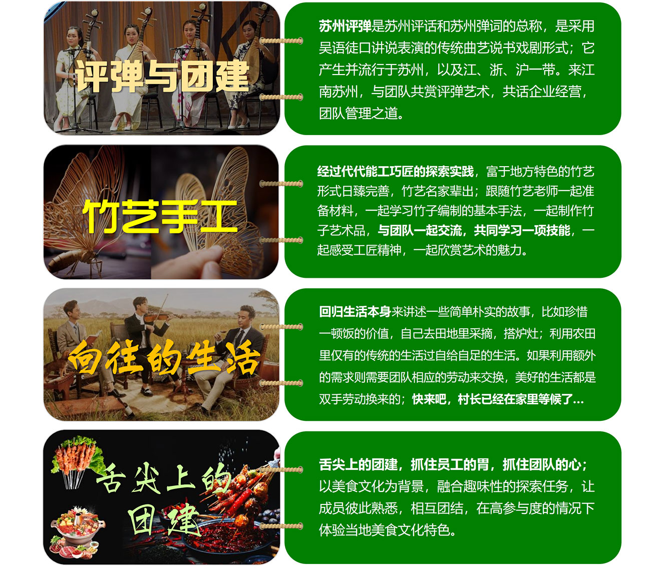 舌尖上的團建,抓住員工的胃,抓住團隊的心;以美食文化為背景,融合趣味性的探索任務(wù),讓成員彼此融合。